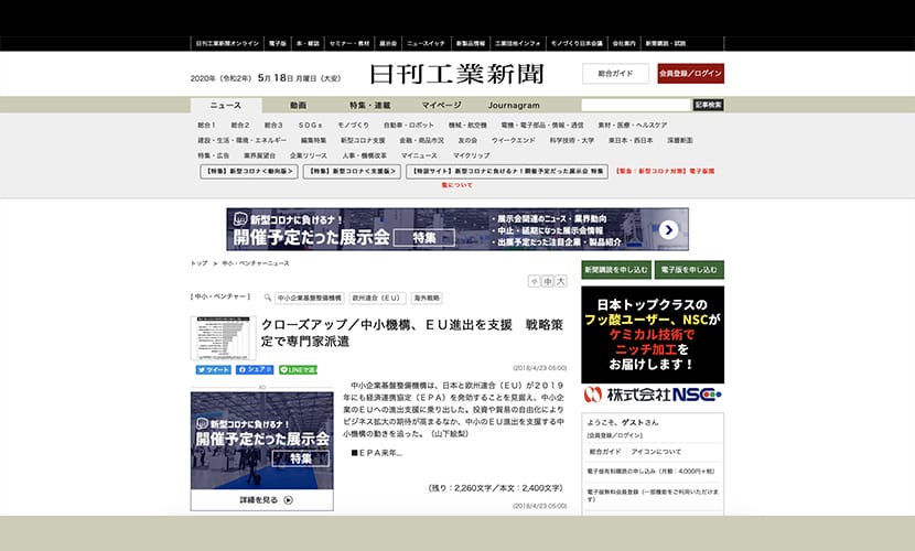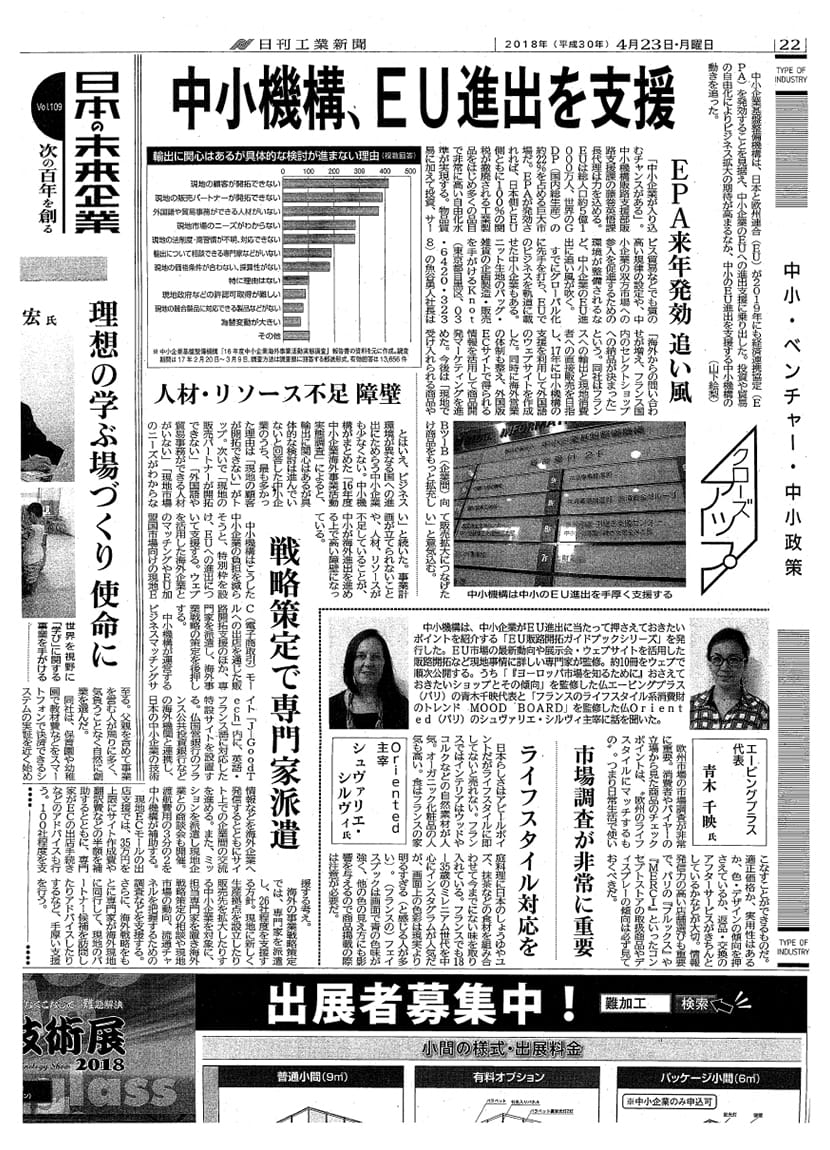 インタビュー メディア掲載 インタビュー新聞記事掲載 日刊工業新聞に、中小機構で行ったEU販路開拓セミナー「フランス消費財マーケット最新動向」についての記事が掲載されました。 中小企業のヨーロッパ進出について、進出前の市場調査が非常に重要な旨をお話ししました。 (April 2019) EU販路開拓セミナー「フランス消費財マーケット最新動... パリのキッズブランド BONTON ショップにてお取...